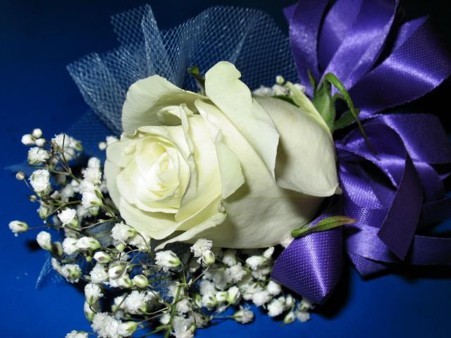 Wallpaper White rose with gypsophila bandaged with purple ribbon