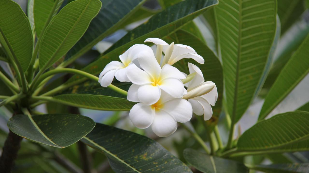 Wallpaper Flowering of beautiful delicate white flowers of plumeria