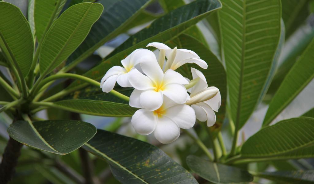 Wallpaper Flowering of beautiful delicate white flowers of plumeria