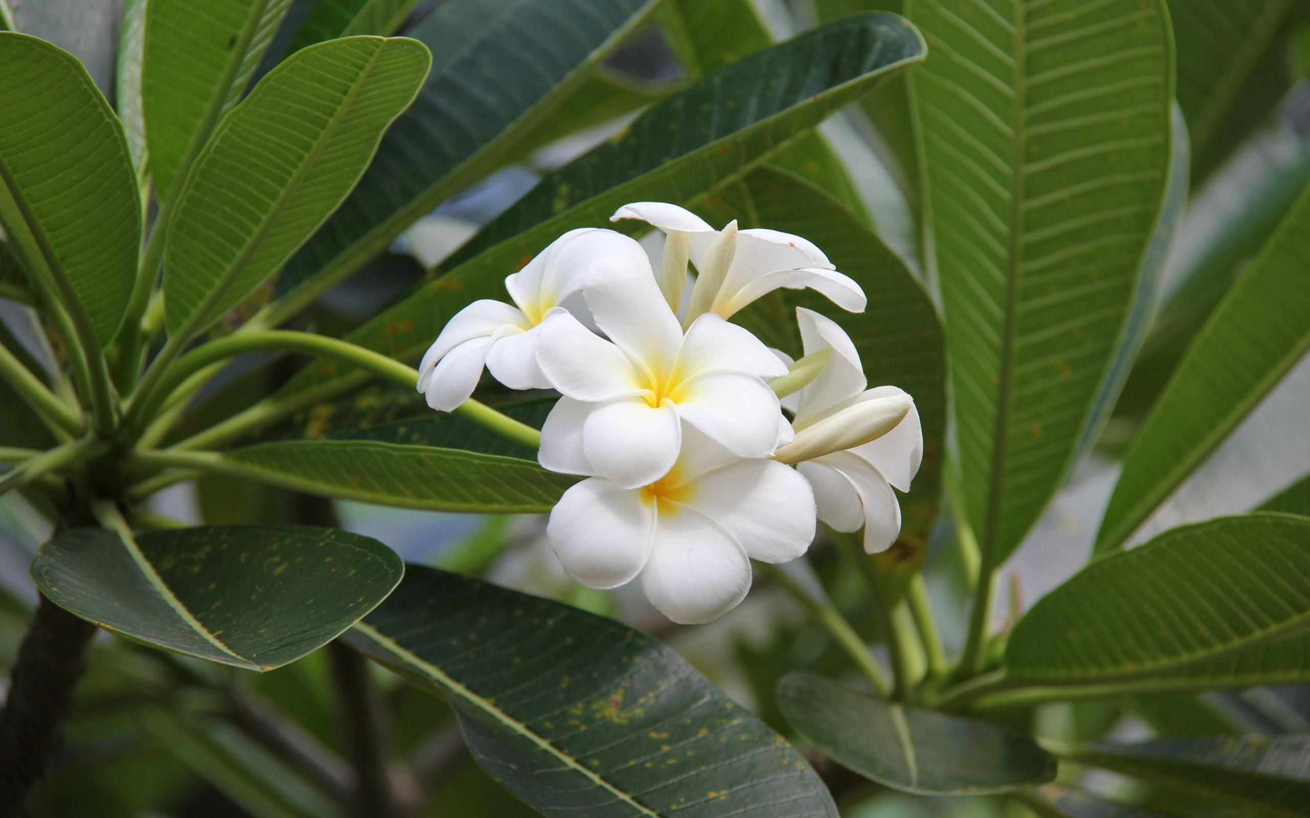 Wallpaper Flowering of beautiful delicate white flowers of plumeria