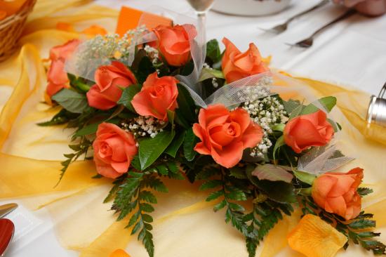 Wallpaper Beautiful bouquet of orange roses with green leaves
