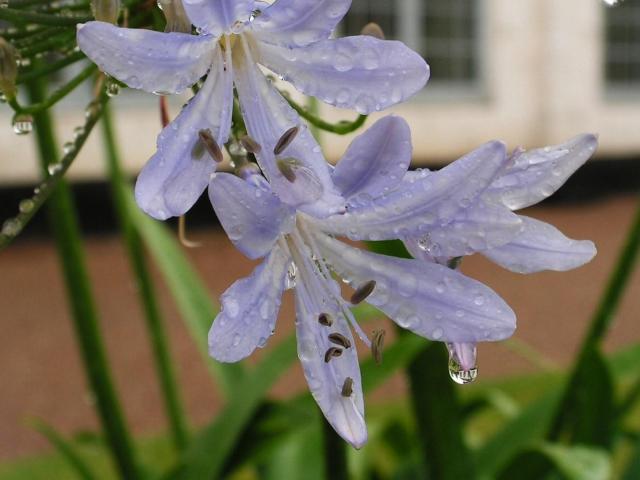 Wallpaper Delicate agapanthus flowers in fresh dew drops