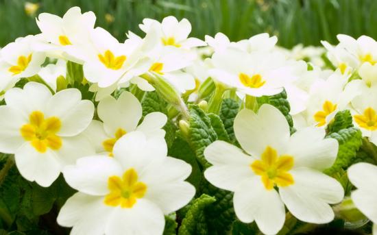 Wallpaper Many white primrose flowers close-up