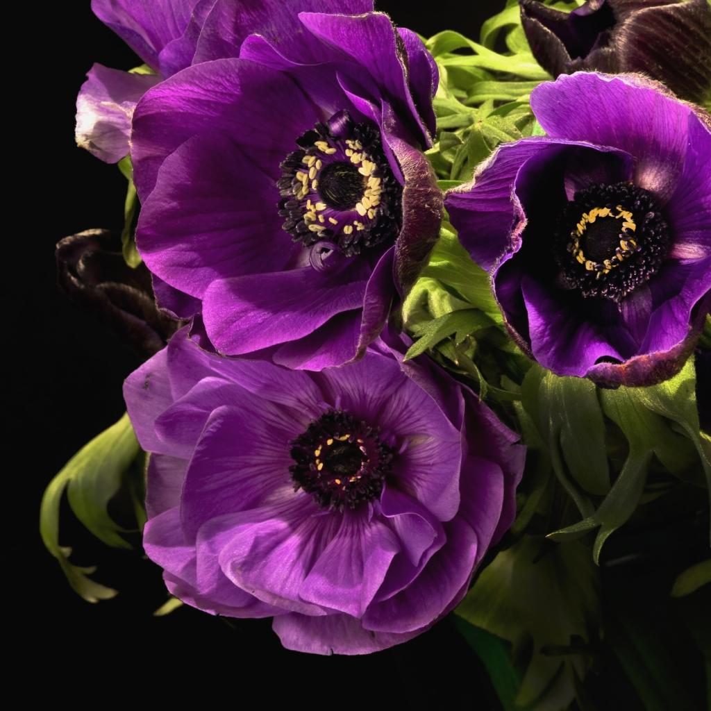 Wallpaper Delicate dreamy girl with a bouquet of flowers anemones