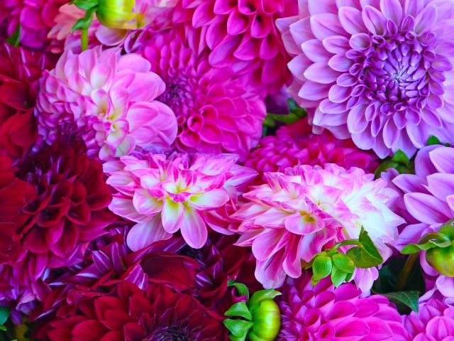 Wallpaper Beautiful multicolored dahlias on a flower bed