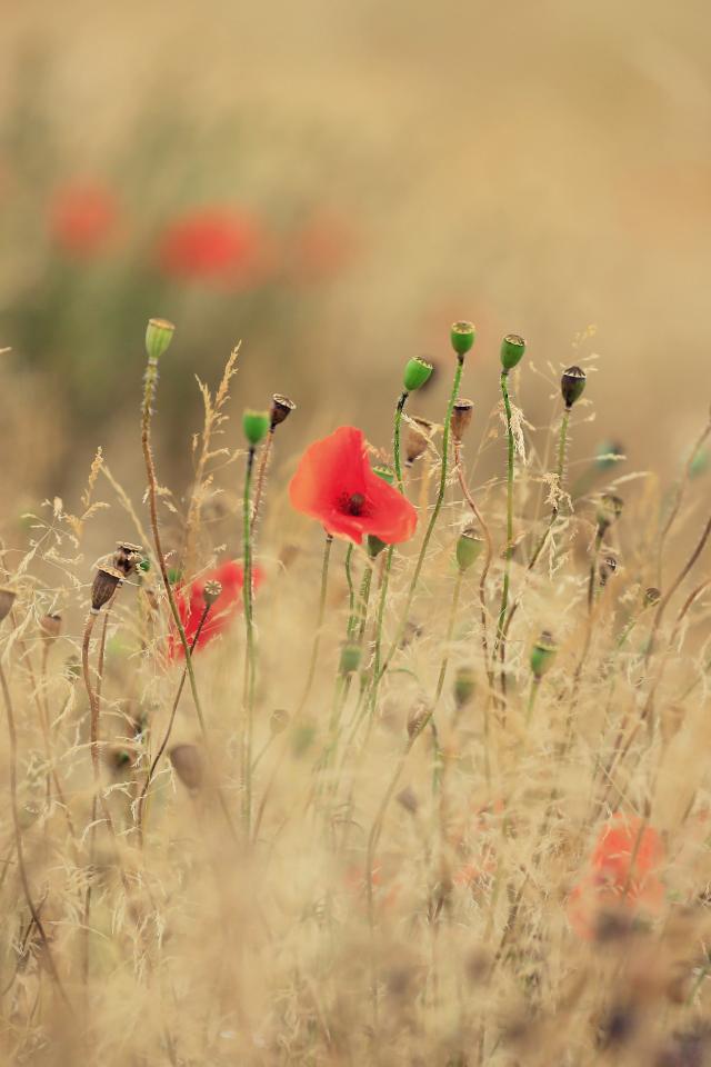 » Wallpaper Red poppies grow among dry grass