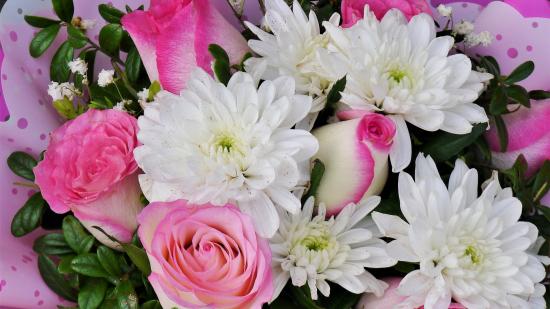 Wallpaper Bouquet of white chrysanthemums with pink roses