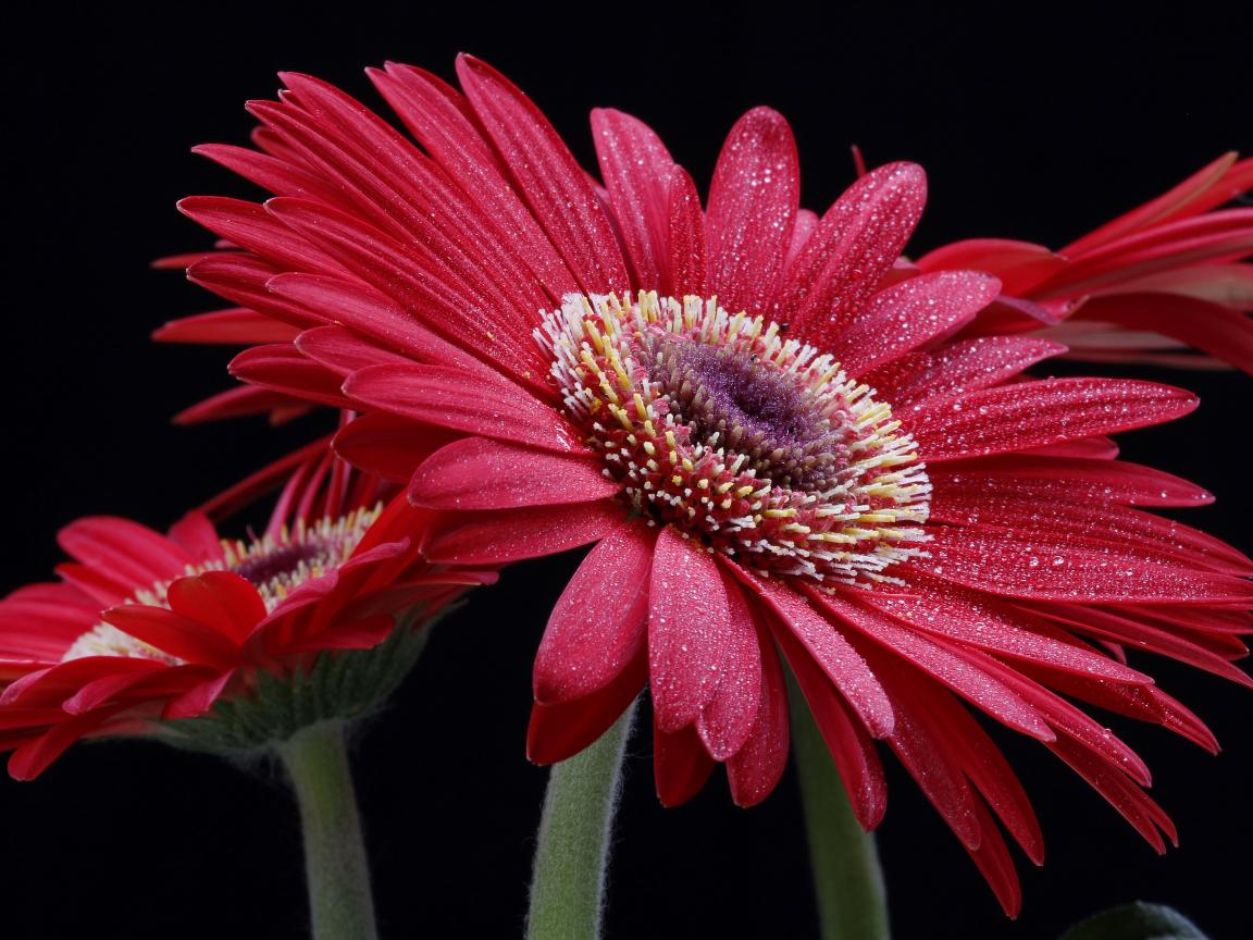 Wallpaper Large red gerbera with water droplets on petals