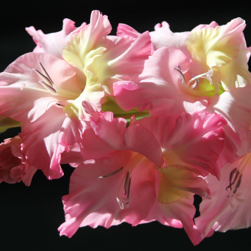 Wallpaper Delicate pink gladioli on a black background