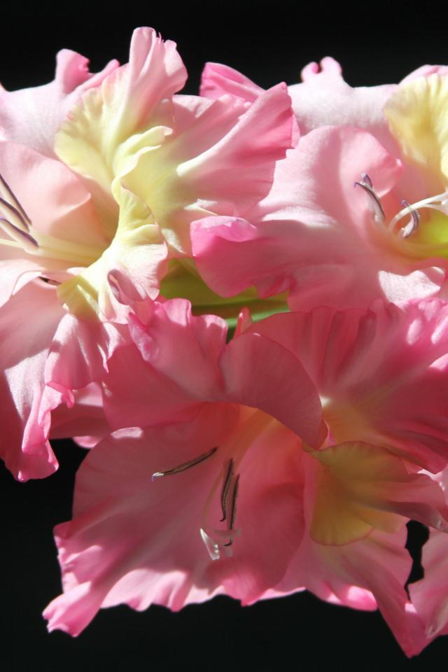 Wallpaper Delicate pink gladioli on a black background