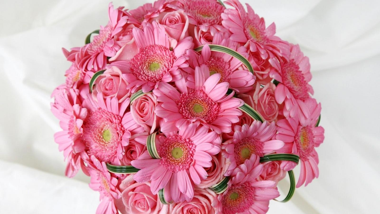 Wallpaper Delicate pink wedding bouquet of gerberas