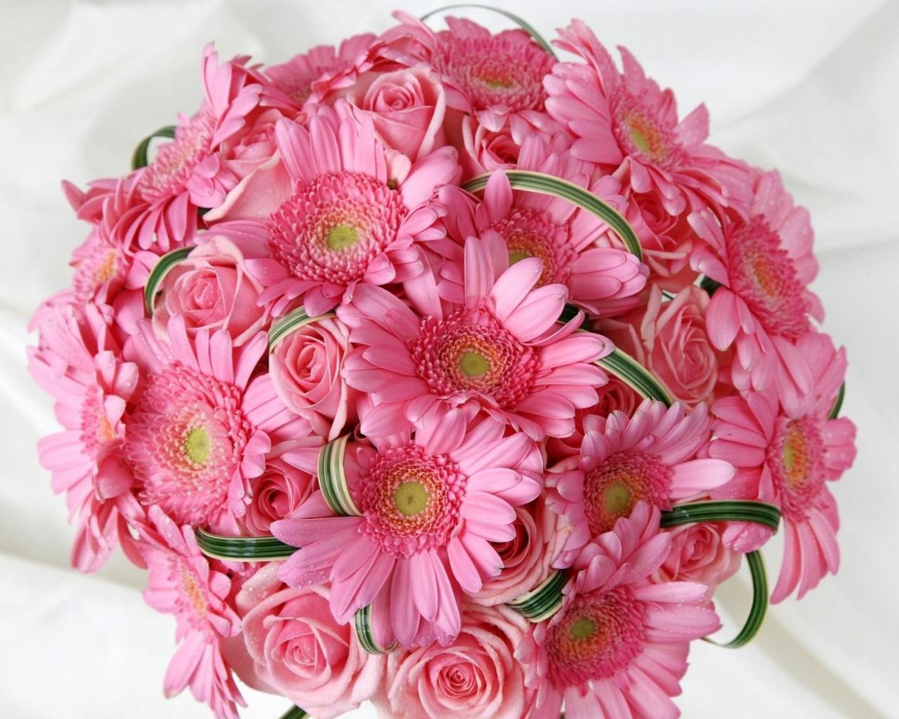 Wallpaper Delicate pink wedding bouquet of gerberas