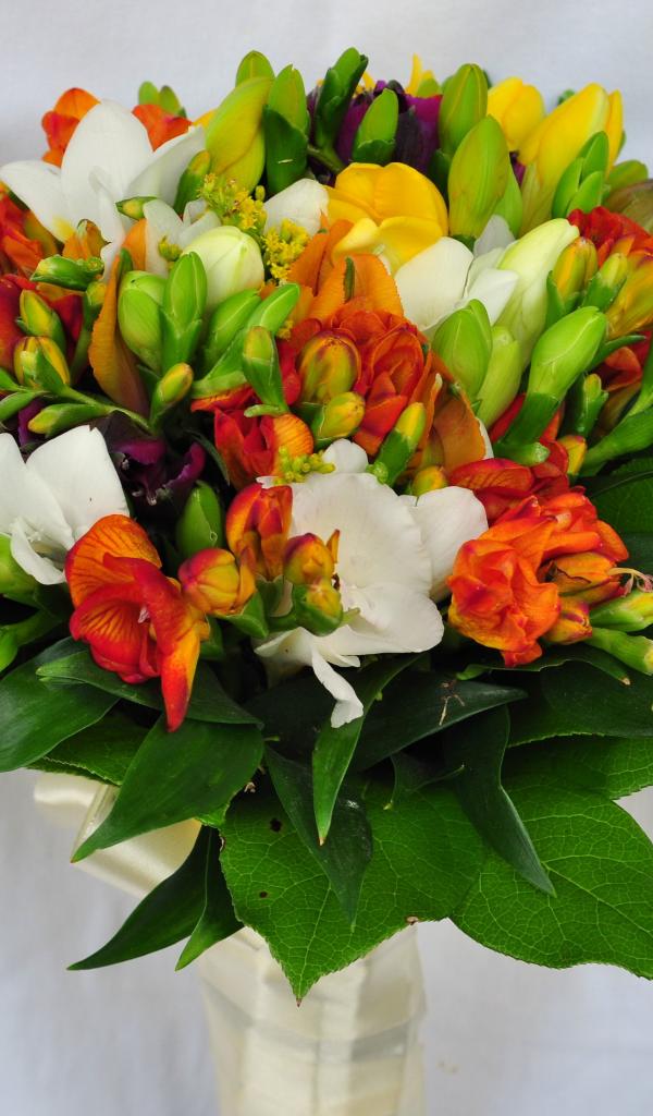 Wallpaper Beautiful bouquet of freesias on a gray background