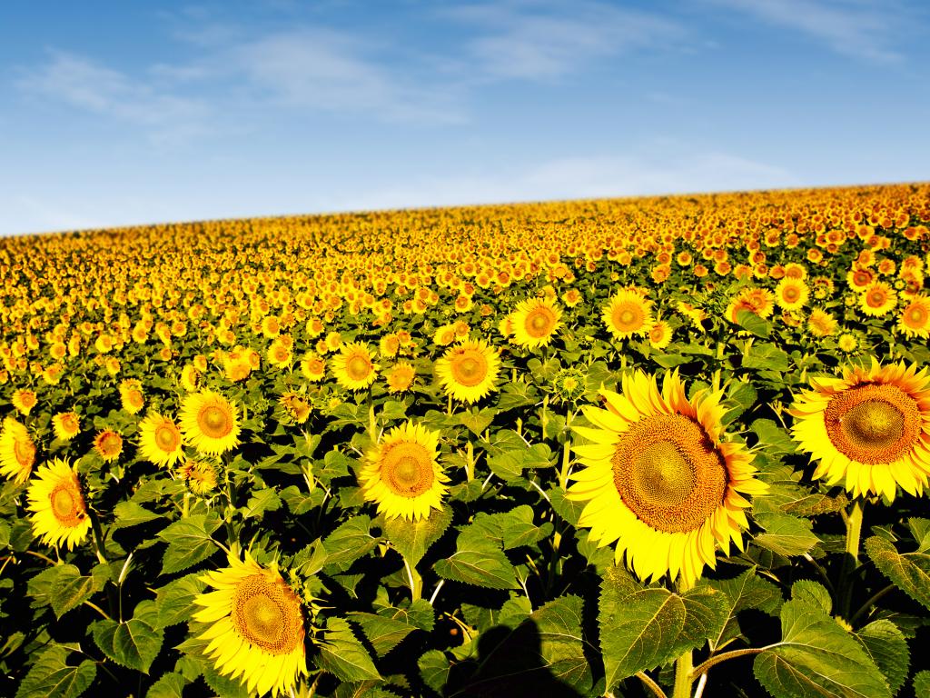 Wallpaper Field of beautiful yellow sunflowers under a blue sky