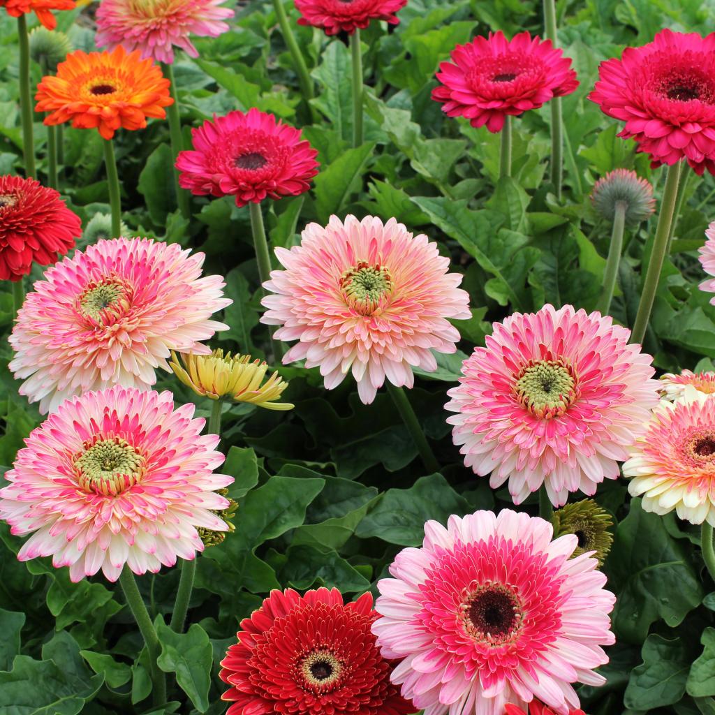 Wallpaper Multicolored delicate gerberas on the flowerbed