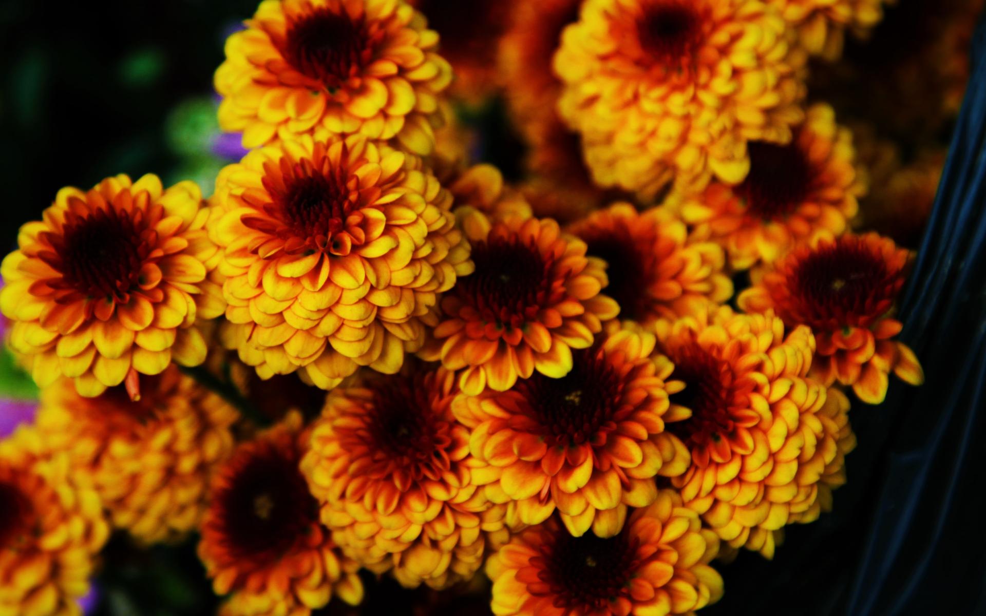 Wallpaper Bouquet of bright orange chrysanthemum flowers