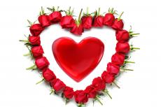 » Wallpaper Heart of roses and chrysanthemum flowers on a white background