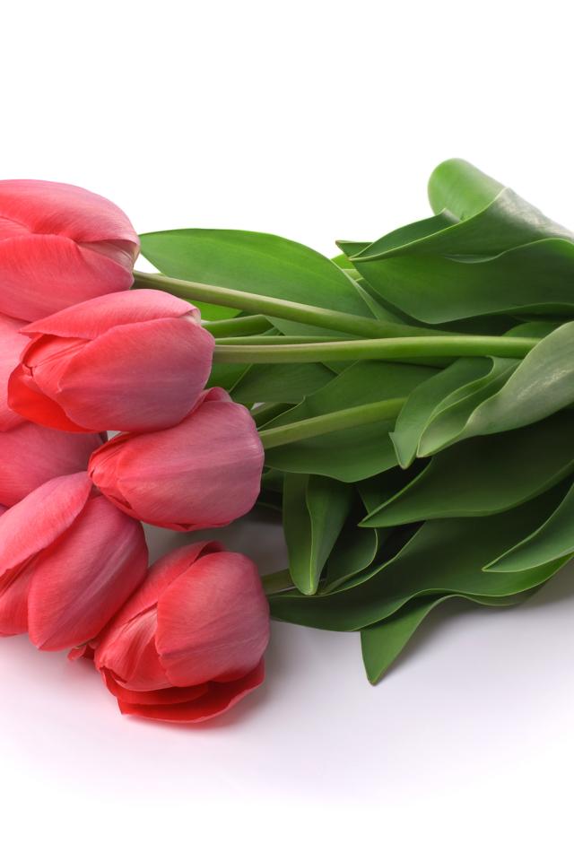 Wallpaper Bouquet of pink tulips on a white background