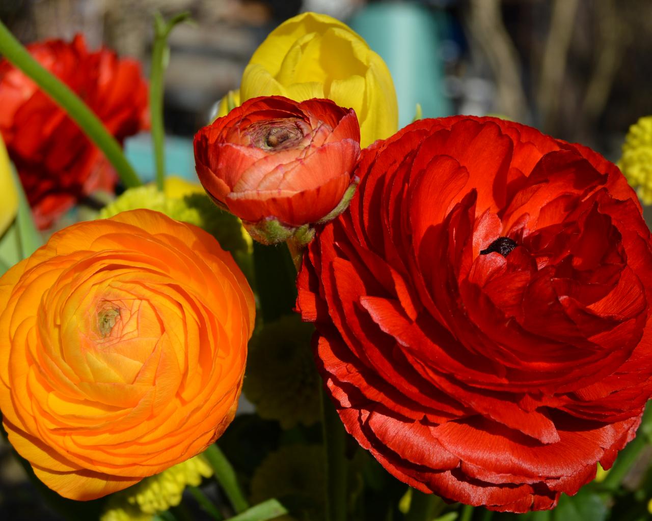 » Wallpaper Red and orange buttercup flowers