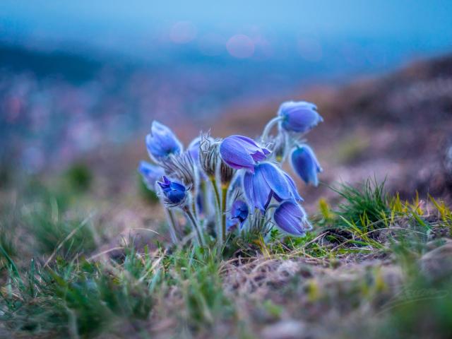 Wallpaper Delicate blue-eyed girl with orchid flowers in hands