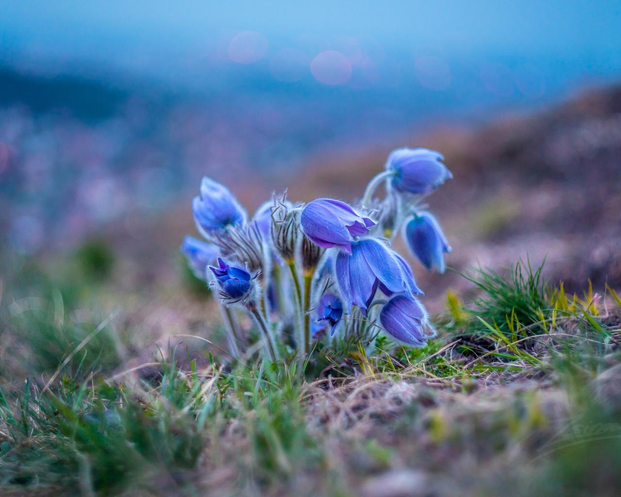Wallpaper Delicate blue-eyed girl with orchid flowers in hands
