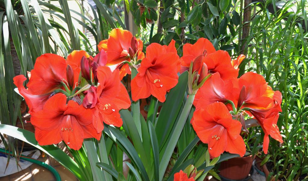 Wallpaper White flowers Amaryllis on a flower bed closeup