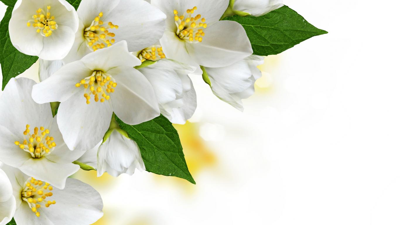 Wallpaper White delicate jasmine flowers on white background, pattern