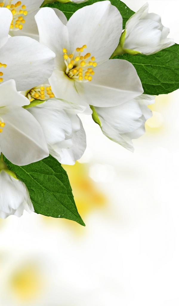 Wallpaper White delicate jasmine flowers on white background, pattern