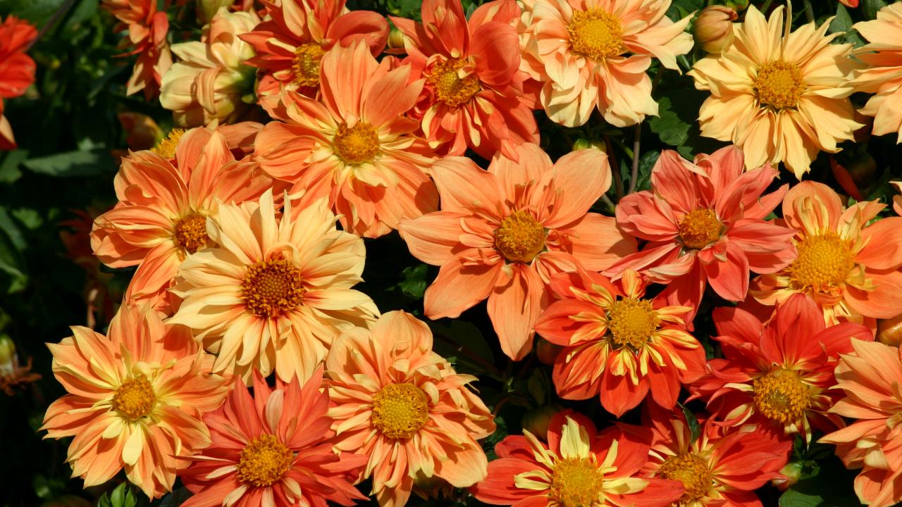 Wallpaper Beautiful orange flowers of dahlias