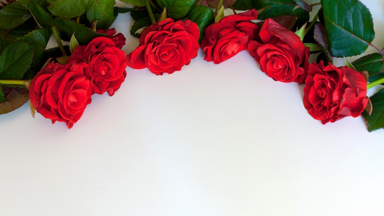 Wallpaper Red roses on a white background, template for a greeting card