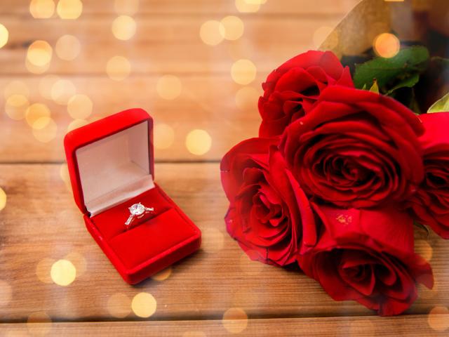 Wallpaper The offer with a ring and a bouquet of red roses