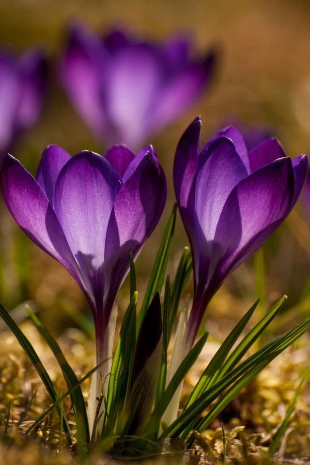 Wallpaper Beautiful little violet crocuses closeup