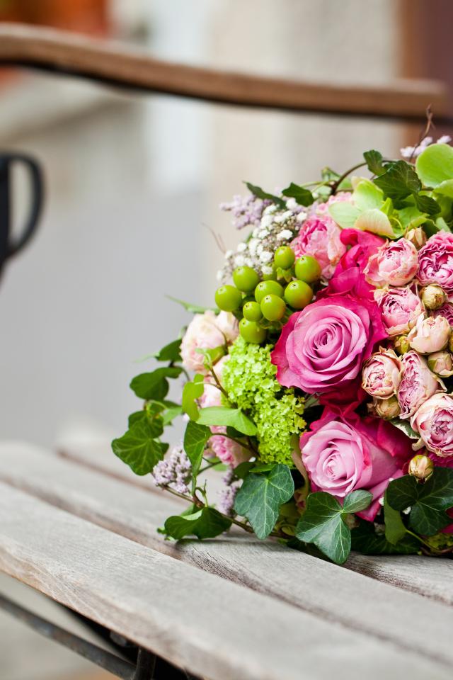 Wallpaper Beautiful big bouquet of flowers on a wooden bench