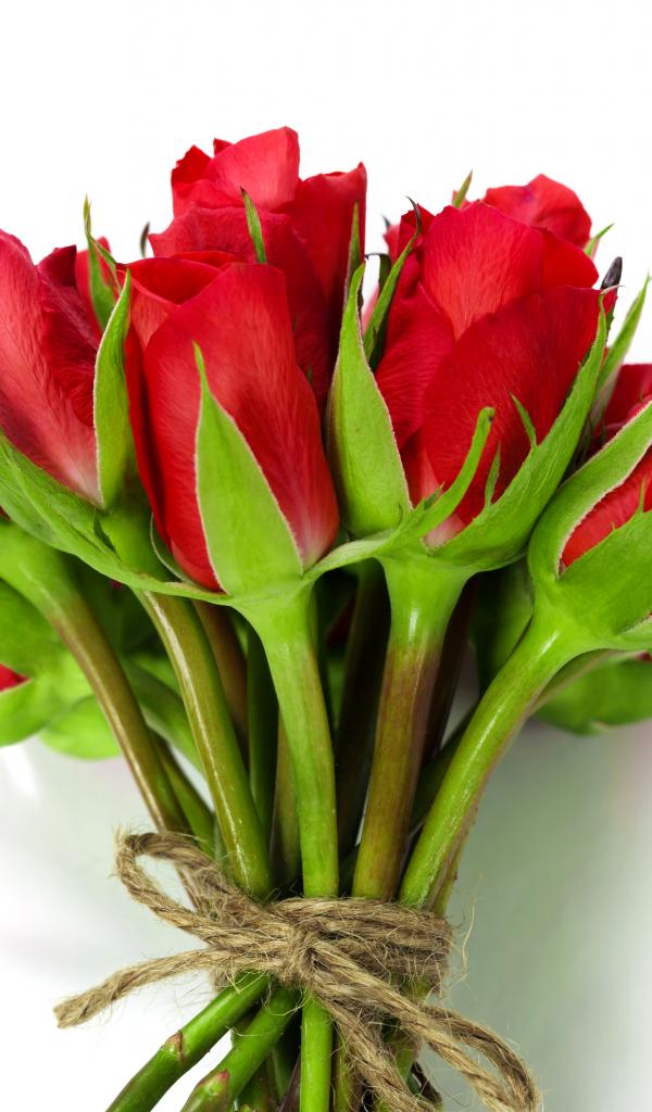 Wallpaper Bouquet of red roses tied with a rope on a white background