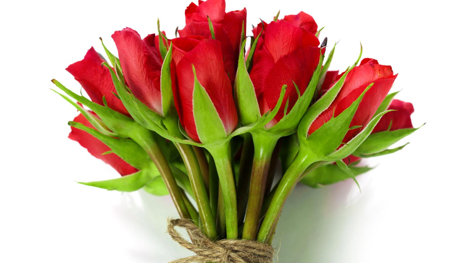 Wallpaper Bouquet of red roses tied with a rope on a white background