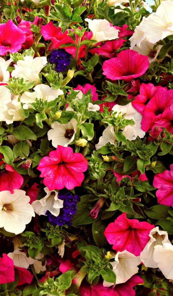 Wallpaper Multi-colored petunias flowers close-up