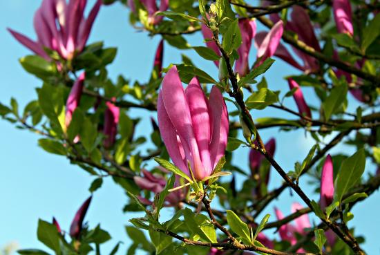 Wallpaper Beautiful pink magnolia flowers on the tree