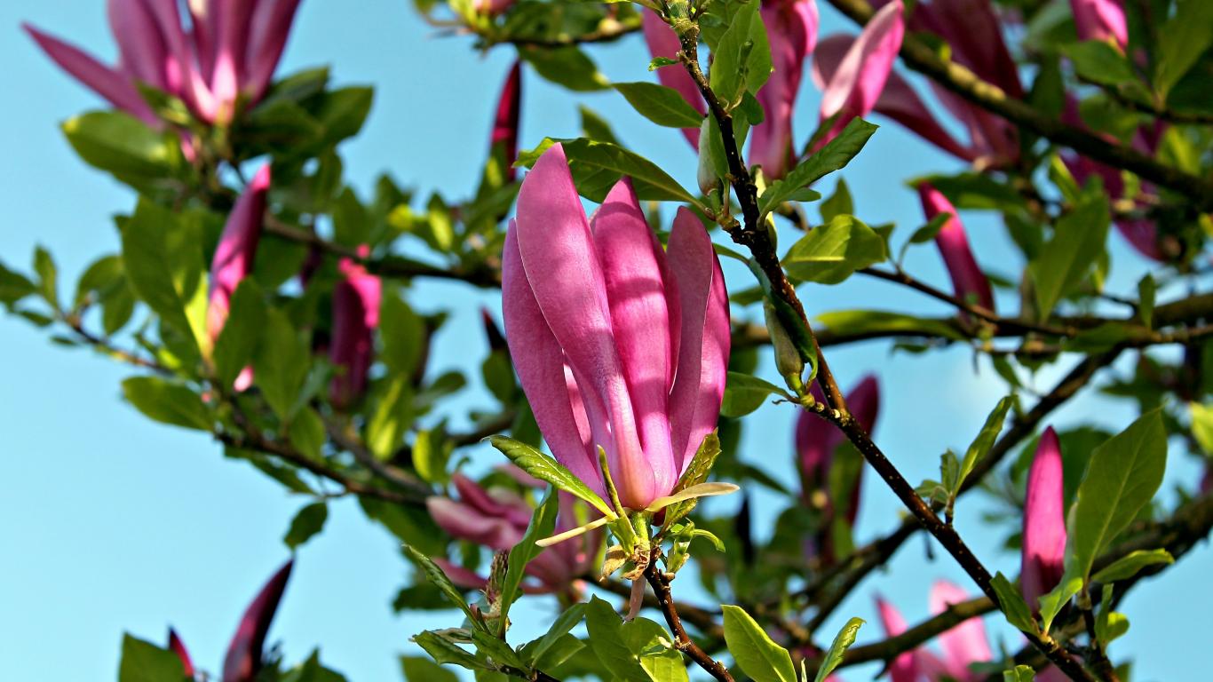 Wallpaper Beautiful pink magnolia flowers on the tree