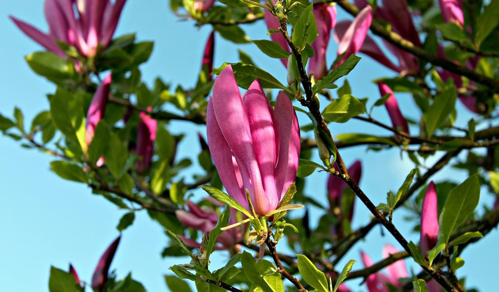 Wallpaper Beautiful pink magnolia flowers on the tree