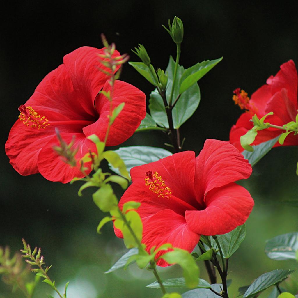 Wallpaper Beautiful red hibiscus flowers with green leaves