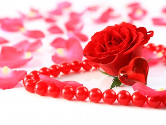 Wallpaper Red rose with beads and a small red heart