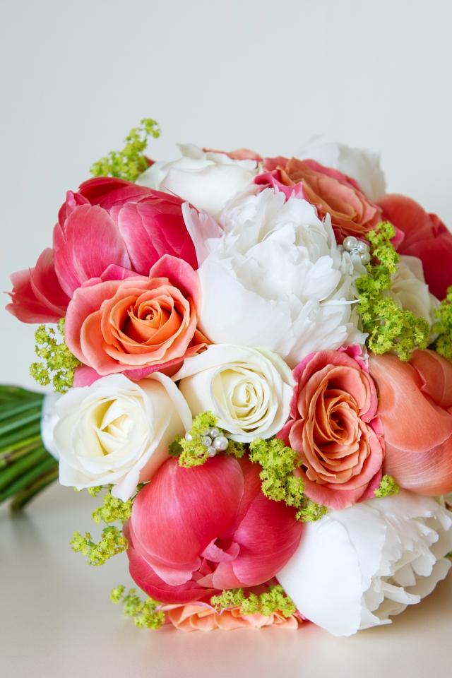 Wallpaper Beautiful wedding bouquet of roses and peony flowers