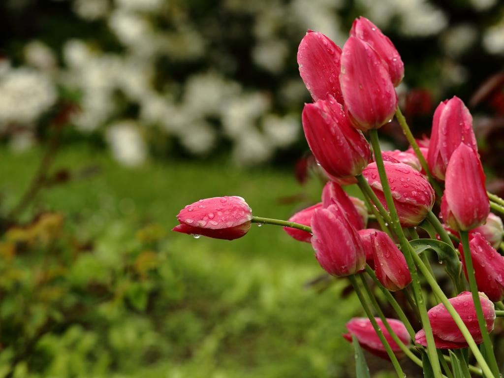 Wallpaper Bouquet of pink tulips in rain drops