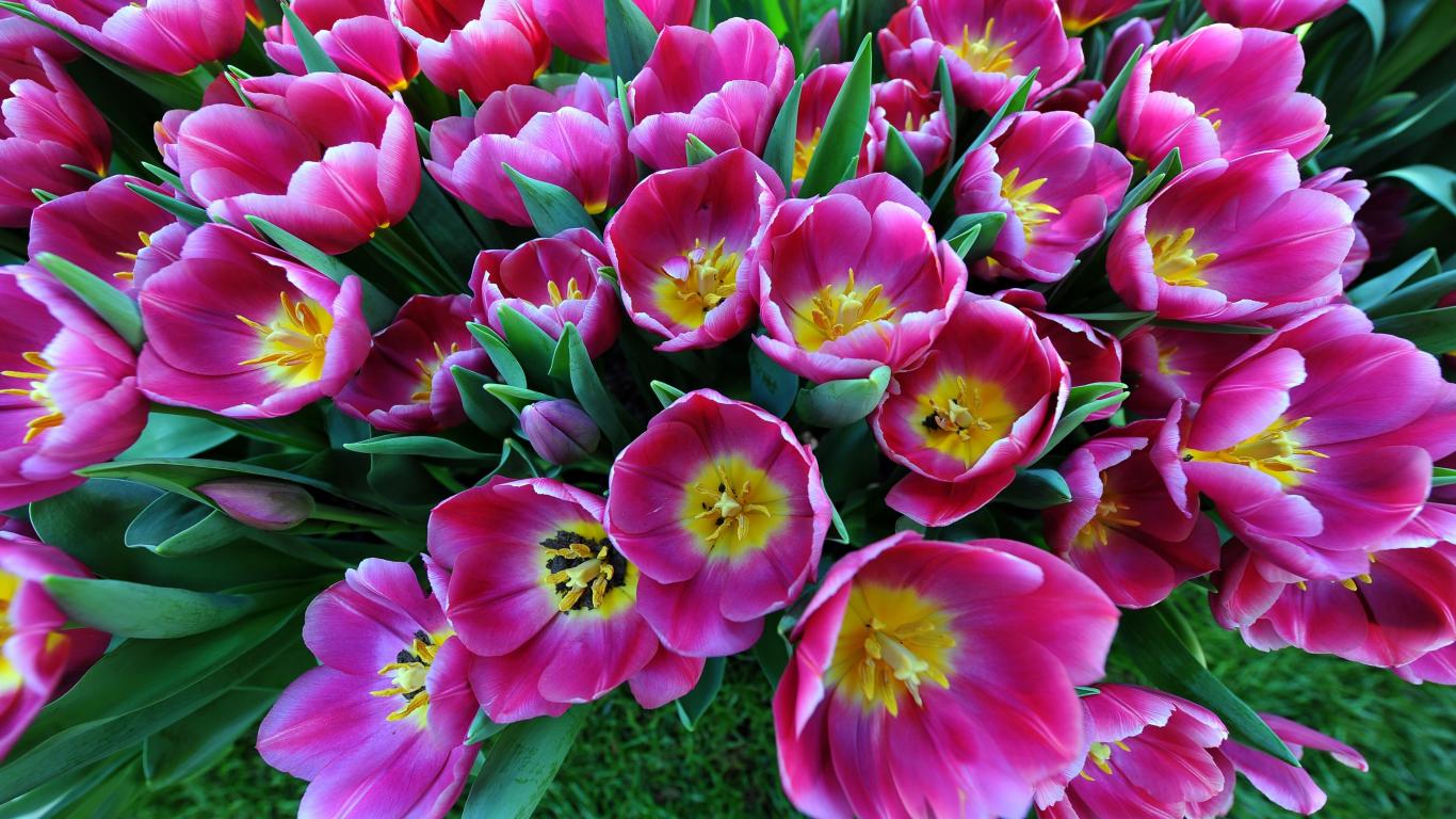 Wallpaper Large bouquet of pink tulips, top view