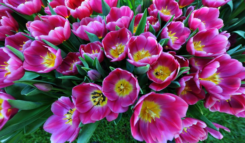 Wallpaper Large bouquet of pink tulips, top view