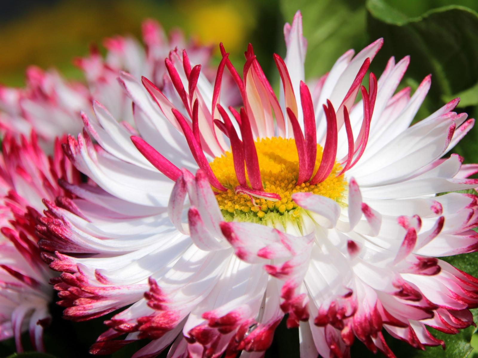 Wallpaper White daisy flowers with red petals and yellow center