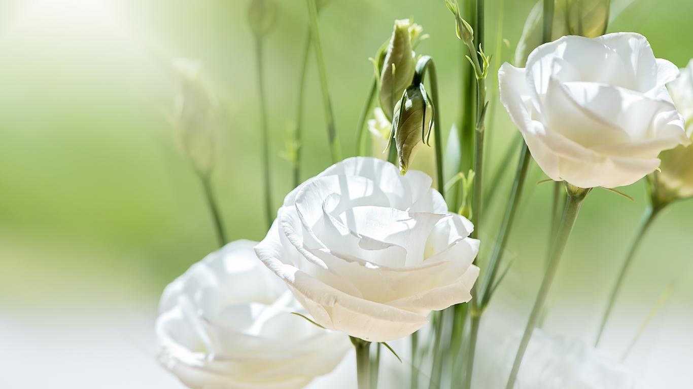 Wallpaper White flowers of Eustoma with buds in the sun