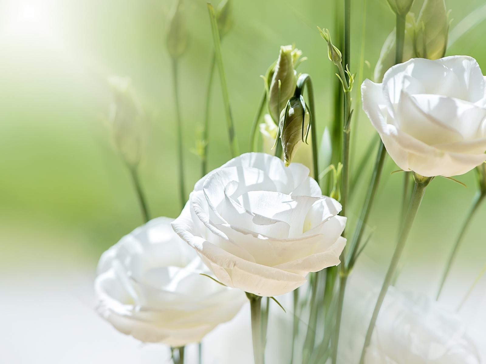 Wallpaper White flowers of Eustoma with buds in the sun
