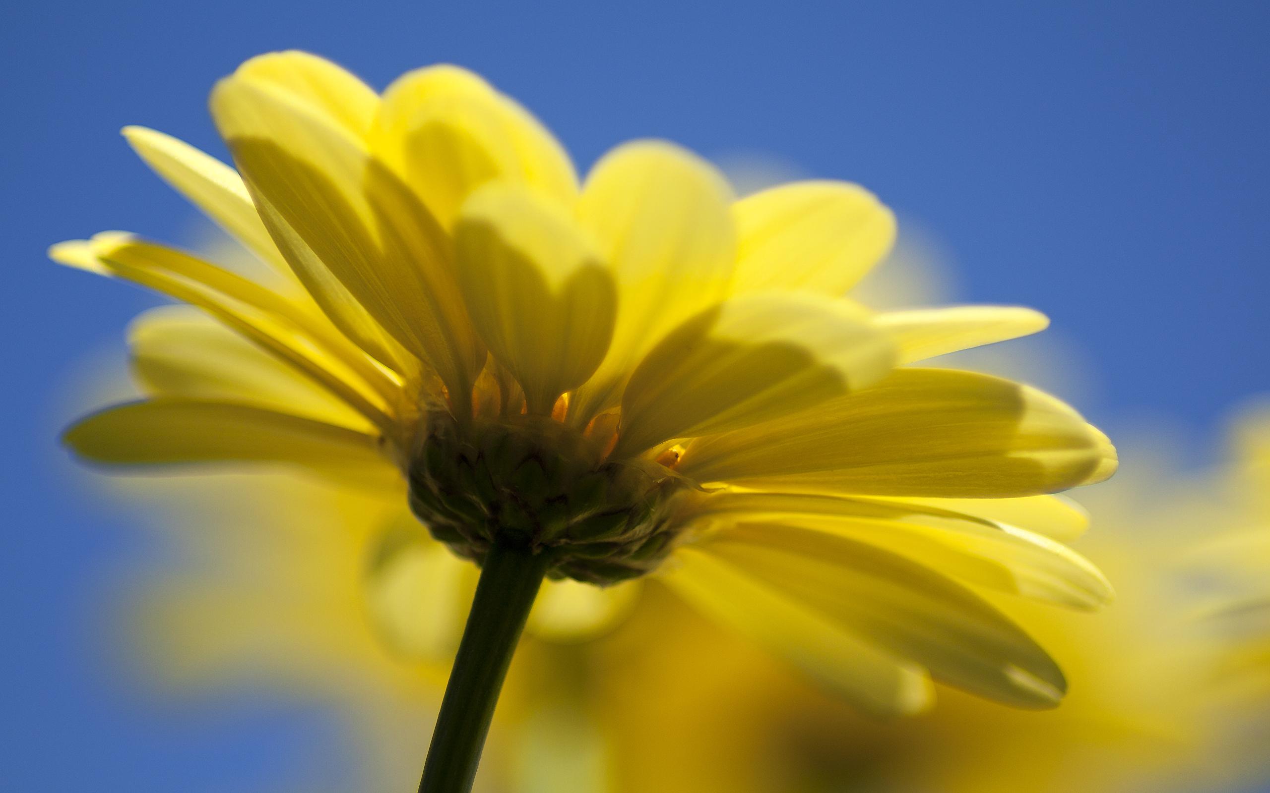 Wallpaper Yellow gerbera flower on a blue background