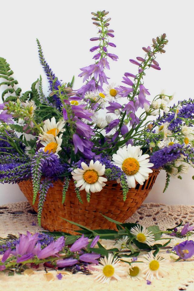 Wallpaper Basket of beautiful wildflowers on a gray background